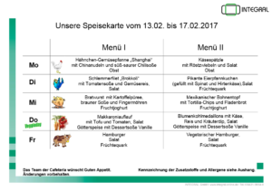 Speiseplan 13.2 – 17.2.17