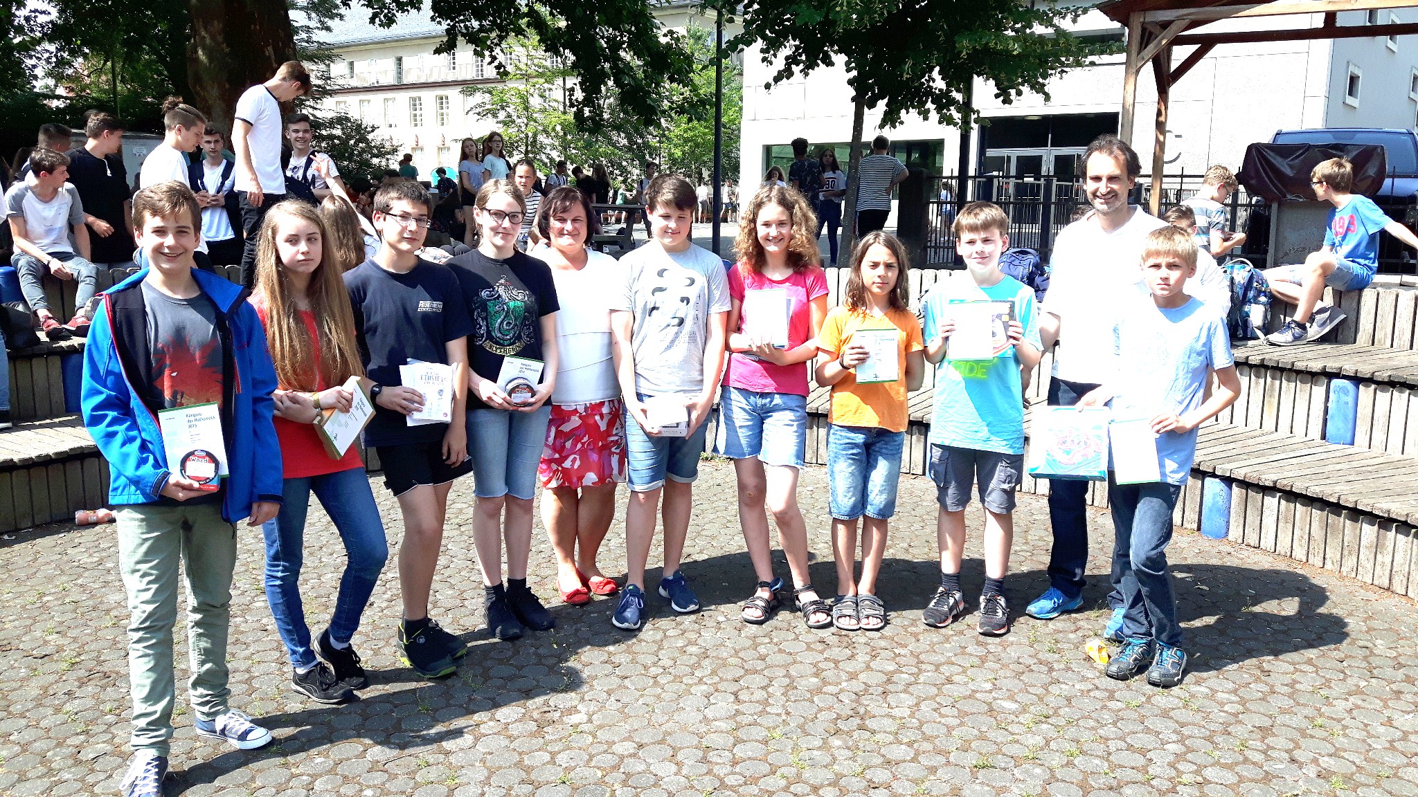 Bei strahlendem Sonnenschein überreichten die Schulleiterin Frau Biedebach und Herr Issing von der Wettbewerbsorganisation am vergangenen Freitag die Preise und ihre Glückwünsche an alle Siegerinnen und Sieger.