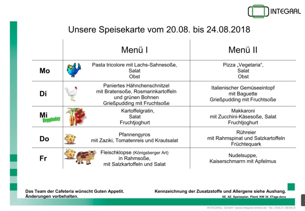 Speiseplan 20.08. – 24.08.2018