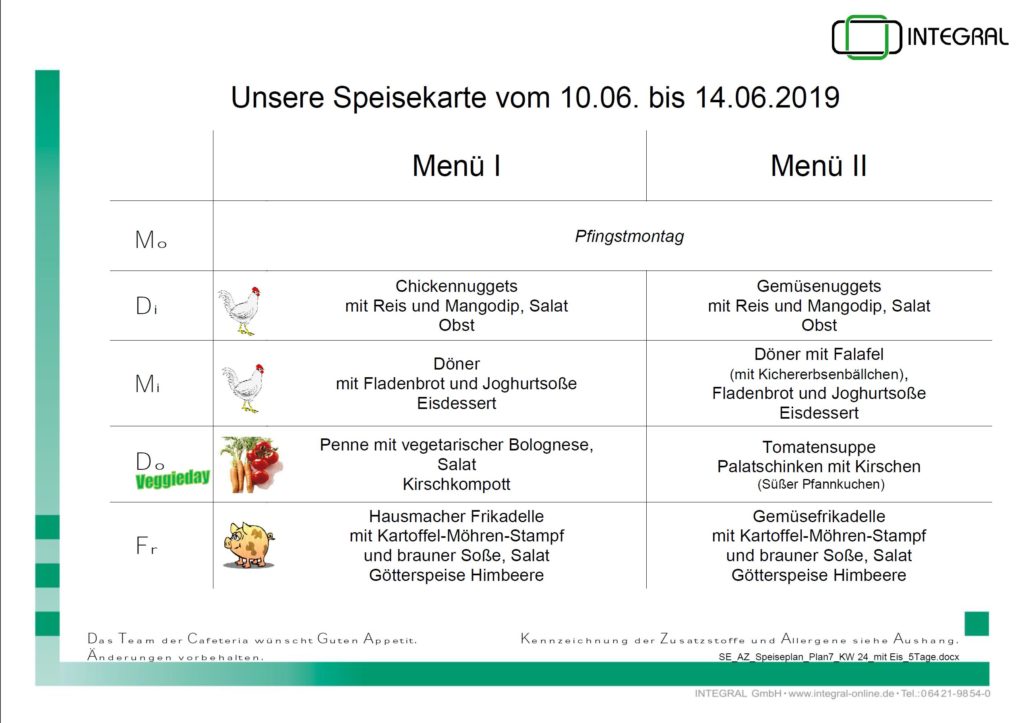 Speiseplan 10.06. – 14.06.2019