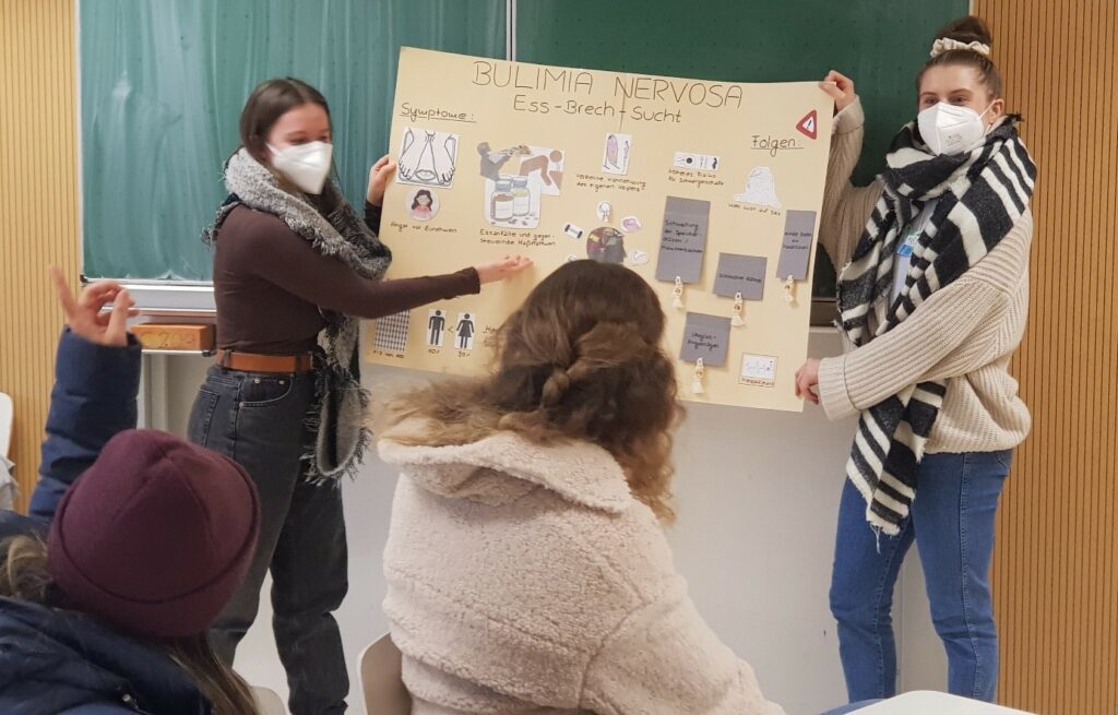 Nach der Workshopphase fand innerhalb der Klassen eine Reflexion des Tages mit den Klassenlehrer*innen statt. Mit nach Hause nehmen konnten die Jugendlichen die Informationen zu allen Themen in Form von Fact-Sheets, die von den Studierenden erstellt worden sind, sowie Informationen zu Hilfsangeboten und Ansprechpersonen. „Wenn ich eine Wunde habe, lass ich mir ein Pflaster aufkleben. Genauso normal muss es werden, dass ich mir Hilfe hole, wenn ich psychische Probleme habe“, so eine Jugendliche im Anschluss an die Veranstaltung.