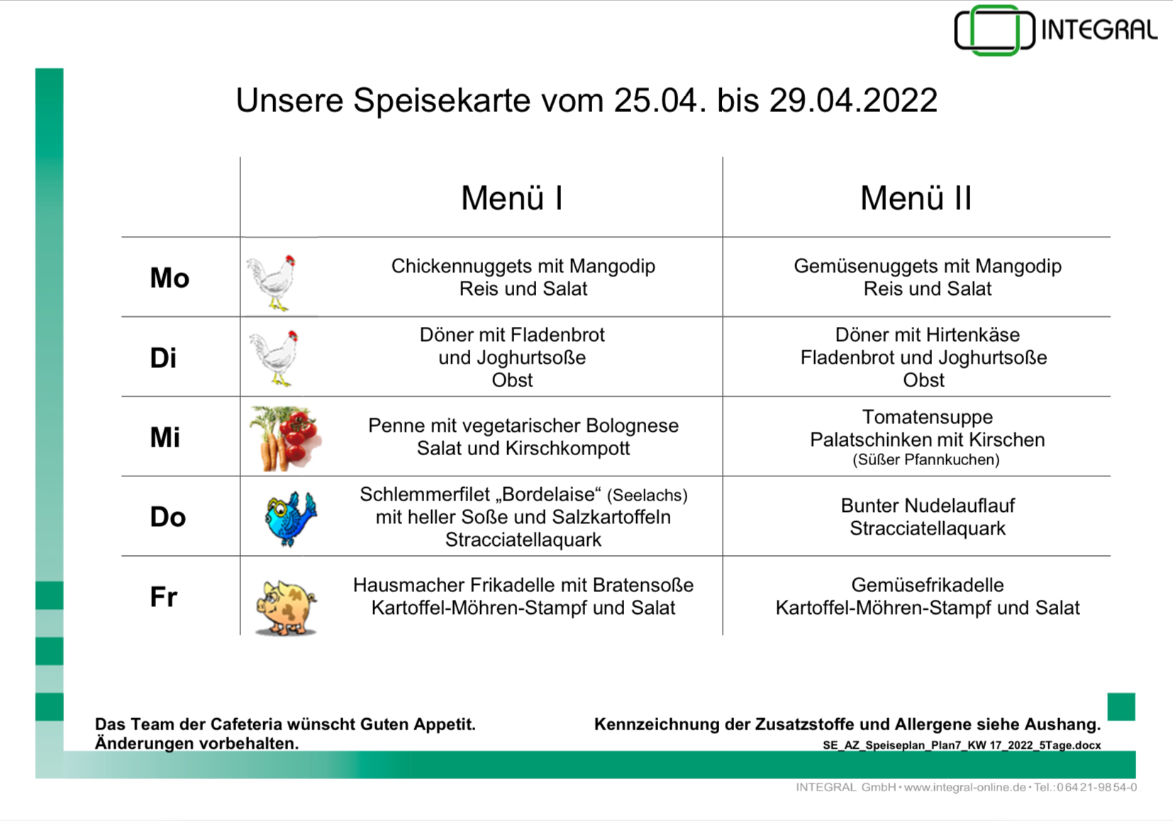 Speiseplan 25.04 – 29.04.2022