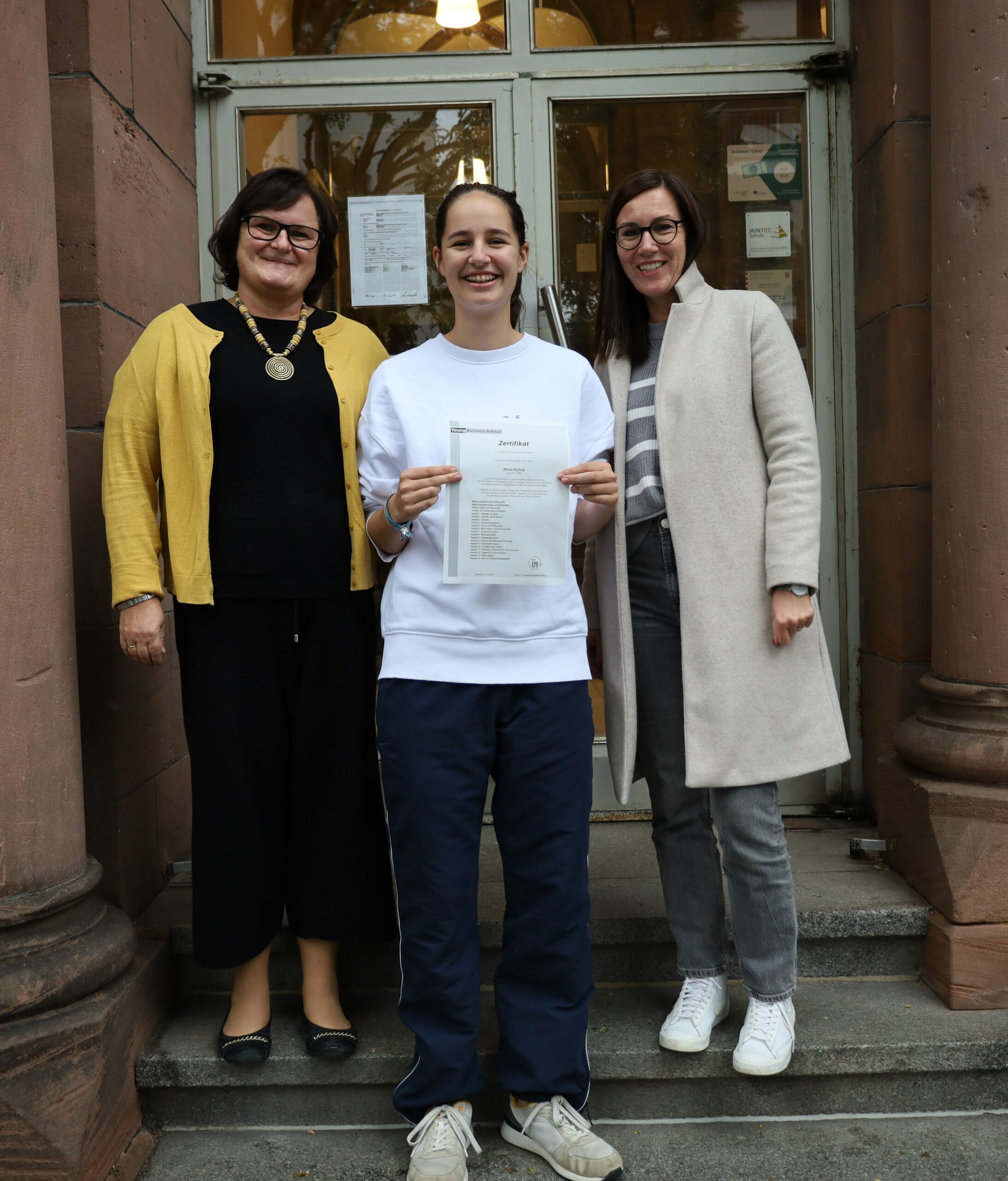 Über einen Zeitraum von zwei Halbjahren hat Marie Hollick (Q1) an einem Propädeutikum der Young Business School des Instituts für Jugendmanagement Stiftung in Humanmedizin teilgenommen. Hierzu verließ sie im Zuge eines Pull-Outs für einen gewissen Zeitraum den Unterricht, um sich den Lerninhalten des außerunterrichtlichen Kurses zu widmen, die das Curriculum des Regelunterrichts übersteigen.