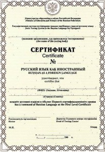 | 1. Zertifizierungsstufe | первый сертификационный уровень – ТРКИ 1 Attestierung allgemeinsprachlicher Fähigkeiten auf dem Niveau etwa eines deutschen Grundkursabiturs; sprachliche Zugangsberechtigung für russische Hochschulen | € 108,- |